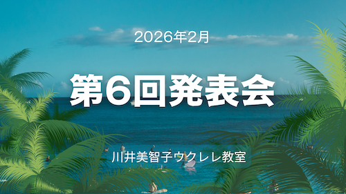 これからはマイペースで楽しみ、発表会に参加し、皆様とウクレレを楽しみたいと思います。